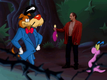 TOONSTRUCK![]() Uitgever: Virgin Interactive Entertainment / 1996 Ontwerper: Burst Platform: DOS, PC, Mac, Linux. Systeemeisen: --- DOS 5.0 of hoger - IBM PC 486/66 MHz processor (Pentium aanbevolen) - 8 MB RAM (16 MB aanbevolen) - SVGA 256K video card (1 MB aanbevolen) - 8-bit geluidskaart (16-bit aanbevolen) - 4x CD-ROM drive - 30 MB opslagruimte. Categorie: Science fiction, cartoonwereld, humor, 2D en 2.5D getekende beelden, live action, 3de persoon, point & click. Beschrijving: Als Drew Blanc, animator van The Fluffy Fluffy Bun Bun Show, is je leven niet helemaal gegaan zoals gepland. Je baas is absoluut niet meer tevreden over je en wil je kwijt. Je creativiteit heeft je verlaten. En net als je denkt dat het niet veel erger meer kan, wordt het dat toch. Door een bizar ongeluk met elektronica (niet vragen) duikel je zomaar in de gestoorde en niet zo warme en wazige wereld van je eigen cartooncreaties. Om weer thuis te komen, moet je de geheimen van deze gekke landen ontrafelen voordat ze jou ontrafelen. ![]() ![]() Grotere plaatjes bekijken? Ga naar de screenshots. |