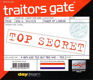 TRAITORS GATE![]() Uitgever: Daydream Software / 1999 Ontwerper: Daydream Software Platform: PC. Systeemeisen: --- Windows 95/98 - Processor: Intel Pentium 166 MHz - 64 MB RAM - Videokaart: 16-bit kleuren - 8x CD-ROM drive - 100 MB vrije opslagruimte. Categorie: Geheim agent, inbreken, diefstal voorkomen, geïllustreerd realisme, 1ste persoon, point & click, NL ondertiteld. Beschrijving: Niemand heeft ooit de kroonjuwelen uit de Tower of London kunnen stelen. Maar nu vermoedt het Pentagon dat een van zijn directeuren van plan is de wereldberoemde Britse kroonjuwelen te stelen met behulp van geheime informatie en geheime blauwdrukken. Majoor D.G. Anderson, hoofd van het Europese bureau ORPHIA is namelijk overgelopen met geclassificeerde Pentafgon documenten in zijn bezit. Als speciaal agent Raven krijg je de opdracht om de diefstal te voorkomen. En dat niet alleen. Je moet de zwaarbewaakte Tower of London infiltreren om de juwelen te lokaliseren en te vervangen door exacte replica's. Deze speciaal gemaakte replica's zijn uitgerust met geavanceerde volgsystemen die de (Amerikaanse) CIA naar de overgelopen directeur en zijn handlangers zullen leiden wanneer de overval plaatsvindt. Dit zou een eenvoudige taak zijn, ware het niet dat de Britse inlichtingendienst niet op de hoogte is gebracht van je bezoek. Je zult moeten inbreken zonder dat iemand het merkt en net zo geruisloos weer vertrekken. En dat terwijl de juwelen door een peperduur geavanceerd beveiligingssusteem worden bewaakt. Om je te helpen, krijg je een apparaat in PDA-stijl dat toegang geeft tot een camera met e-mailsysteem voor communicatie met het basisstation, en het gebruik van de verschillende gadgets die je vroeg in het spel aanschaft. Het helpt ook om de tijd bij te houden. Een belangrijke factor in dit spel is, dat je maar ongeveer negen uur werkelijke tijd hebt om je taak uit te voeren!