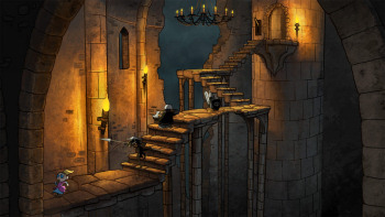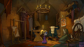 TSIOQUE![]() Uitgever: OhNoo Studio / 2018 Ontwerper: OhNoo Studio, Smile Platform: PC, Mac. Systeemeisen: --- Windows XP/Vista/7/8/10 - Processor: Intel Core 2 Duo 2.4 GHz of AMD Athlon X2 2.4 GHz of hoger - 4 GB RAM - Grafische kaart met 512 MB RAM - 2500 MB beschikbare opslagruimte - Geluidskaart. --- MAC OS Snow Leopard 10.6.3 of later - Processor: Intel Core 2 Duo 2 GHz - 4 GB RAM - 2500 MB beschikbare opslagruimte. Categorie: Fantasie, humor, ontsnapping kasteel, magie, tijdpuzzels, handgetekende 2D en 2,5 D beelden, 3de persoon, point & click. Walkthrough: klik hier voor Yvonnes Nederlandstalige walkthrough. Beschrijving en review: De kleine prinses Tsioque zit gevangen in het kasteel dat door een boze tovenaar is overgenomen. Maar Tsioque is niet het soort prinsesje dat gaat zitten wachten tot een mooie prins haar komt bevrijden! Ze is dapper, eigenwijs en heeft een ongewoon talent voor het creëren van chaos, overal waar ze verschijnt. Tijdens haar ontsnapping doorkruist Tsioque het kasteel, waar nu demonen en magische wezens wonen en waar zelfs de muren onder invloed zijn van de kwaadaardige betovering en dodelijke vallen blijken te zijn. Tsioque moet de betovering van vijf dieren ongedaan zien te maken, die haar dan zullen helpen het rijk van de kwade magiër te ontvluchten. Tsioque is een charmant sprookje voor volwassenen in comic-tekenstijl. Het verhaal begint met een sprookjesboek dat wordt voorgelezen door een stemacteur. Je ziet de tekst van het verhaal ook op het scherm. In een korte tussenscène wordt er weer een stukje voorgelezen en aan het einde van het spel wordt voorgelezen hoe het met Tsioque verder zal gaan in haar échte leven. ![]() ![]() Tsioque is namelijk in het echte leven een jong meisje met een vader die games maakt en een moeder die ondertussen kostwinner is en alles regelt: de koninginin Tsioques werkelijke leven. Dit leven komt nauwelijks aan de orde. Alleen in het sprookjesboek en aan het einde kom je er wat meer over te weten. In het adventure is Tsioque een prinsesje, dat moet zien het rijk van de Magiër te ontvluchten. Enkele hints geven aan, dat dat rijk de game is van haar vader. Je ziet bijvoorbeeld dat sommige catastrofes in de game-wereld veroorzaakt worden door de echte wereld. Een wasmachine, fiets of telefoon bijvoorbeeld zakt de game-wereld in en verstoort die. Af en toe is het gezicht van de Magiër te zien: het gezicht van haar vader. Het spel lijkt de boodschap uit te dragen dat het maken van games het familieleven flink belast. Daarachter ligt dan het onuitgesproken wereldbeeld: De maker van games is een man, degene die het huishouden draaiend houdt zijn vrouw. Maar ook daar speelt het sprookje een rol: de vrouw wil dat haar man zijn verantwoordelijkheden neemt en haar rol overneemt. Hij belooft dat. Hij rekent erop dat zijn game geld zal opbrengen en anders neemt hij een echte baan. ![]() ![]() De puzzels die je moet oplossen zijn niet zo moeilijk, maar toch onderhoudend. Het zijn voor het merendeel inventarispuzzels en behendigheidsspelletjes waar het op snelheid aankomt. Zo moet Tsioque bijvoorbeeld snel een onzichtbaarheidsdeken uit de inventaris over zich heen doen, ongezien langs kantelen sluipen of snel een trap aflopen. Als Tsioque wordt betrapt, krijgt ze gelukkig meteen een nieuwe kans. Voorwerpen in de inventaris zijn niet met elkaar te combineren. Dat scheelt veel trial-and-error tijd, omdat elk voorwerp zelfstandig te gebruiken is. Soms kun je een behendigheidsspel overslaan (skip) en een langer behendigheidsspel heeft een soort levels. De levels die je al had afgemaakt hoef je niet over te doen als je te langzaam bent en faalt. Het lukt dus goed dit soort spelletjes te doen. Er zijn verder twee logische puzzels. Een waarbij je een elixer moet brouwen en bij de ander moet je een code vinden. Ook deze zijn niet te moeilijk, omdat je hints vindt op papiertjes en in boeken. Hoewel er weinig variatie is in het soort puzzels, maak je met Tsioque genoeg mee om je niet te vervelen! ![]() ![]() Tsioque heeft een duidelijke verhaallijn en is mooi vormgegeven. De handgemaakte tekeningen zijn prachtig en levendig. Mooie kleuren, geen ruimtes die te donker zijn om iets te zien en de Magiër ziet er geweldig uit met zijn vlammende hoofd. De friemelende soldaatjes, als de eerste vernieling heeft plaatsgevonden, zijn prachtig getekend. In een paar streekjes zijn ze herkenbaar en hun bewegingen ook. Net als de mannetjes die in een afgrond vallen, is de katten-gooiende bewaker mooi om te zien. De humor zit niet vast aan de tekst, maar komt tevoorschijn in de plaatjes. Een grappig voorbeeld daarvan is de boze fee - krokodil. Die moet niezen als hij peper naar zich toe krijgt gegooid. De snottebel aan zijn neus haalt hij overtuigend op. De dikke verliezer van de boogschietwedstrijd kan wel héél slecht tegen zijn verlies en slaat zijn iele tegenstander in elkaar. Ook dit werkt op de lachspieren. Grappig is ook de manier waarop degenen die financieel hebben bijgedragen, worden geëerd: in een boek van de magiër staat een stamboom getekend met hun namen erin, want zonder hen zou Tsioque niet bestaan. ![]() ![]() Tsioques mimiek verandert naar gelang de situatie. Haar ogen worden groot als ze iets spannends meemaakt of verbaasd is en als ze gevangen wordt genomen, ziet ze er betrapt uit. De bewegingen van alle figuurtjes zijn soepel. Hoewel het spel getekend is in stripstijl, komen de bewegingen heel natuurlijk over. Je ziet aan het gewiebel van een soldaat en het kruisen van zijn benen bijvoorbeeld, dat hij enorm nodig naar de wc moet. Er is niets mis met de animatie van de figuurtjes. Ook de achtergrondbeelden zijn levendig en fijn getekend. Je ziet bijvoorbeeld in het puin een mannetje liggen die geholpen wordt door een ander, terwijl het verhaal daar niet over gaat. Over het algemeen is de achtergrond behoorlijk statisch, maar dat is geen gemis, omdat er op de voorgrond zo veel te zien is. Vooral de vlammen van toortsen, kaarsen en vuur