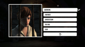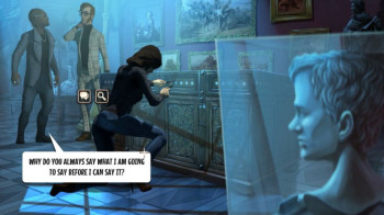 ![]() Beelden en animatie De bewegingen van de personen zijn natuurlijk, soepel en niet stijf. In één scène, in een hotelkamer in New York, zijn de bewegingen echter vreemd: John loopt niet, maar glijdt over de vloer heen. Ook lopen de mondbewegingen vaak niet synchroon met de tekst. Als Mol echter de catacomben in klimt, komt dat zeer natuurlijk over, een mooi beeld! De mimiek op het gezicht van een van de boeven op de woonboot zegt alles over wat hij denkt. Wegvliegende raven in de achtergrondtekeningen, en bijvoorbeeld neerdwarrelende sneeuwvlokken maken het tot een realistisch geheel. De tekeningen in 2D en 3D zijn gedetailleerd en nergens te zwart, ook niet op donkere plaatsen. Voorwerpen zijn dus goed te vinden. Er zijn tekeningen die bij het verhaal horen: achtergronden en personen e.d. en er zijn statische tekeningen waarop in te zoomen is om mensen en voorwerpen nader te bekijken. Deze kun je met de muis omkeren om ze van alle kanten uit te bekijken. Dan zijn er tekeningen in kaders die tussenscènes laten zien, als een soort foto's. Deze niet-bewegende beelden geven in weinig plaatjes toch een goede weergave van de tussentijdse gebeurtenissen.