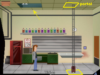 Open de kantinedeur met de sleutels. Hier ontmoeten Lloyd en Steve elkaar.Murray gaat vanzelf de verkoopplek van de kantine in. Lloyd en Steve krijgen ruzie. Open de magnetron en Murray pakt er een mes (knife) uit. Open de rode kast met de sleutels en pak de draagbare schuifladder eruit. Hij blijft aan de cursor plakken. Je ziet verschillende vloertegels om de ladder neer te kunnen zetten. Zet hem neer op de tegel rechts van de rode kast, voor het groene kastje. De ladder schuift uit. Doe het rolluik open met de knop. Dat wil Murray aan Steve en Lloyd over laten. Gebruik de ladder. Boven Murrays hoofd is ook een tegel te zien. Met zijn handen kan hij de tegel niet wegduwen. Gebruik het gereedschap. Crystals visioen staat daar. Je ziet dat Murray onder Crystals voeten een tegel weghaalt. ![]() ![]() Het is de bedoeling dat je de tegel waarop de portal staat, weghaalt. Zet de ladder dus op de 6e tegel van links in de onderste rij. Ga de ladder op en haal de plafondtegel weg. Zet de ladder nu op de 6e tegel van links in de onderste rij. Gebruik de ladder en haal de plafondtegel weg. De portal is nu weg en Crystal springt door het gat in de vloer. Ze komt in de kantine terecht. Murray opent het rolluik en roept Steve. Je ziet Steve van Reaper naar mens veranderen en Crystal schreeuwt dat Steve de Reaper is die haar ontvoerde. Ze verdwijnt in de portal en Steve zegt dat er meer Reapers zijn en dat Danielle van hem een Reaper had gemaakt. Praat met Steve. Danielle had haar ziel gedeeld met Steve, zodat hij een Reaper werd. Reapers ontvoeren mensen om ze ook een Reaper te maken of zetten ze gevangen in hun cellen. Steve heeft Lloyd ontvoerd. Een Reaper is een soort geest. Ze kunnen van mensen Reapers maken. Ze wisselen van menselijke vorm naar de vorm van een Reaper en omgekeerd. Beëindig het gesprek en geef daarna de sleutels aan Steve. Steve haalt de deur van het slot, zodat Murray de kantine uit kan. Openingszin voor Eve, baantje voor Crys