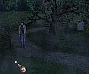 Ga terug over het rotspad in de richting van de villa. Bovenaan de trapjes zie je een smal pad naar links gaan, bij het lage verlichtingspaaltje. Neem dit smalle pad langs de klip. Patrick zal hier Anthony Marston tegenkomen, de jonge man van de rode sportauto, die onderweg een pakketje oppikte bij de geparkeerde auto. Praat met hem en vraag wat Marston in zijn hand heeft. Marston zal zeggen dat hij het papier met touwtje hier gevonden heeft en butler Rogers wilde helpen met de boel schoon houden. Patrick vindt het maar vreemd. Marston wordt nu ook genoteerd op de gastenlijst achter het boek-icoon.