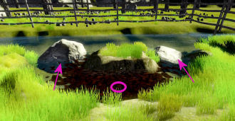 Haal de lange tak uit je inventaris en gebruik ze op de witte rotsblokken om ze weg te wippen.