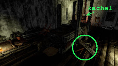 Hier is een klein vierkant luik in de vloer. Klik erop en je gaat weer naar de benedenverdieping.