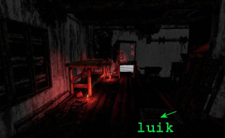 Nu zie je meer. In de opbergruimte ligt een spiegelscherf (mirror shard). Ga zo nodig even op je hurken (C-toets) om dichterbij te komen. Raap de scherf op en ga weer staan (weer C-toets)