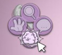 Houd even je linker muisknop ingedrukt en er verschijnt een optie-cirkeltje. Nu kun je kiezen voor bekijken (vergrootglas), pakken/gebruiken (hand) en spreken (tekstballon).
