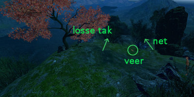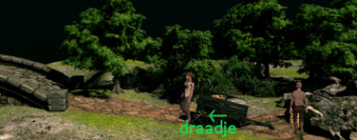 HoofdstraatEven later staat Dery in het dorp op de hoofdstraat. Links staat een parfumeur in haar winkel. Rechts staat een andere verkoper. Tussen hen in is een steeg. Lees het uithangbord bij de parfumeur rechtsklikkend en pak de emmer (bucket) eronder. Praat met de 'nose'. Ze kan allerlei geurtjes in haar omgeving benoemen. Ze maakt én verkoopt parfums. Over Duruk zegt ze alleen dat de stad bestuurd wordt door een tiran. Praat met de winkelier rechts. Hij verkoopt van alles en kan Dery aan spullen helpen, als hij daaraan behoefte heeft. Van de parfum op de toonbank moet Dery afblijven. Ga de steeg in een pak de kleine ton (small barrel) op. Bekijk de container rechtsklikkend en dan linksklikkend. Er zit een houtel lepel (ladle) in die Dery meeneemt, hoewel er gaten in zitten. Ga de steeg uit en loop naar rechts Dery is nu in een gebied waar wegwijzers staan. Hij kan naar de afgrond (precipice) toe, naar het park, naar de grote markt (fair) en hij kan terug naar de hoofdstraat. Het park Kies de wegwijzer naar het park. Praat met de inspecteur, die rattenplagen moet voorkomen en op zoek is naar ratten. Hij kent wat gilde-leden in Duruk en weet dat de gouverneur van de andere steden en dorpen wil dat ze hem eer komen betonen. Pak de doos (box) in het midden en praat met de kunstenaar. Die vindt zichzelf fantastisch. Over Duruk heeft hij niets te zeggen. Hij houdt zich alleen bezig met zijn kunst. Bekijk de potjes verf. De kunstenaar gebruikt weinig kleuren. Dery neemt ze niet mee. Ga naar rechts en kies de afgrond (precipice). De afgrond ![]() Pak de veer (feather) van de glooiing en bekijk hem in de inventaris. De veer is wit. Bekijk de boom. Er zitten vruchten aan de takken die boven de afgrond hangen. Linksklik op de boom. Dery wil pas aan de boom schudden als hij er een reden voor heeft. Bekijk het bosje rechts van de boom. Er zit een losse tak aan, maar Dery kan er met zijn handen niet bij. Gebruik het mes en Dery heeft een tak (branch) in zijn inventaris. Iets verder rechts staat nóg een bosje. Klik erop en Dery merkt dat er een net in vast zit. Hij pakt het net (net) op voor zijn inventaris. Ga bij de afgrond weg. Opblazen rotsblokken