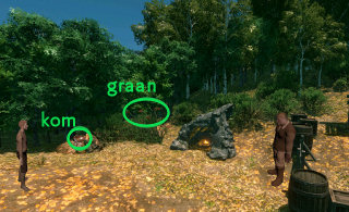 PersoonsgegevensGa terug naar de taveerne en praat met de dronken man. Je kunt hem vragen naar zijn geboortedatum, zijn geboorteplaats en adres. Hij geeft je zijn gegevens. Hij werd geboren in de maand Lunsi in het jaar 121 in het plaatsje Feshna. Over zijn adres wil hij pas na wat extra opmerkingen antwoorden. Hij woont in de Fish Alley. Neem rechts de exit en ga naar Main square toe. Praat met de ambtenaar (All right ... some data) en geef de volgende antwoorden: - I am Arged from the house of Enkil - The month of Lunsi of the year 121 - Feshna - Fish Alley Het geld dat je voor het document moet betalen heb je nog niet. Zalfje voor Mony Ga naar rechts en kies de markt. Op het kraampje links ligt een portemonnee. Probeer hem te pakken, maar dat lukt niet. Je moet de vrouw daar zien af te leiden. Praat met de vrouw over of ze nog andere interesses heeft dan bloemen. Pas op: als je niet geprobeerd hebt het geld te pakken, krijg je deze gespreksoptie niet. De vrouw bestudeert insecten als hobby. Haar lievelingsinsect is de Direpteradie in de bergen leeft rondom rotsen en van suiker houdt. In de buurt van de rivier leven Fireptera, die ze ook leuk vindt. Beëindig het gesprek. Ga naar het kamp. Bekijk de insecten rond de rots. Met alleen het glazen potje lukt het niet de insecten te vangen. Ga terug naar de markt en vraag aan Mony hoe je aan suiker kunt komen. Zij wil wel suiker ruilen tegen een middeltje dat helpt tegen de uitslag op haar handen. Het middeltje is te maken van zuiver water en een extract van een bloem (Floris Maris). Ze vertelt dat je het super schone water en het extract in een kom moet doen en die dan moet verhitten. Ze geeft je een kom (bowl). ![]() Ga naar rechts en kies het bos om heen te gaan. In het bos zie je een groepje witte bloemen, die je niet zomaar kunt plukken. Gebruik het mes en Dery heeft een witte bloem (flower) in zijn inventaris. Doe water in de kom en leg de bloem op de boomstronk. Plet de bloem met de hamer en er zit bloemextract (flower extract) in de inventaris. Doe het extract in de kom water (bowl with mixture) en ga naar rechts. Ga naar het kamp toe en zet de kom in het kampvuur. Dery heeft een zalfje (ointment) gemaakt. Insecten en dollots Ga naar de markt. ![]() Geef het zalfje aan Mony rechts en ze geeft een mandje suiker (sugar) in ruil. Doe de suiker in het glazen potje en ga ermee naar rechts. Kies weer voor het kamp. Hou het potje suiker bij de rots met insecten. In het potje zit nu behalve suiker ook wat insecten (jar). Ga naar rechts en dan naar de markt. Geef het potje met de suiker en insecten aan de bloemenverkoopster. Dery wil de insecten niet rechtstreeks aan haar geven, de vrouw moet langer afgeleid zijn. Zet het potje daarom neer bij de andere potjes die links van het kraampje staan. Pak, terwijl de vrouw de insecten bekijkt wat geld (coins) weg. Certificaat Ga naar rechts en kies Main Square. Geef het geld aan de ambtenaar, maar je moet eerst over het certificaat praten. Vraag dus: Could you ... citizenship certificate? Je moet opnieuw je data doorgeven, zoals je eerder deed. Geef dus weer de naam van de dronkaard, de geboortemaand Lunsi in 121 en de geboorteplaats Feshna. Kies dan Fish Alley als adres. De ambtenaar wil dat je betaalt. Zeg dus dat je geld hebt (Yes, I've got them) en je krijgt het certificaat (certificate). Boot regelen