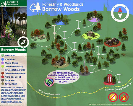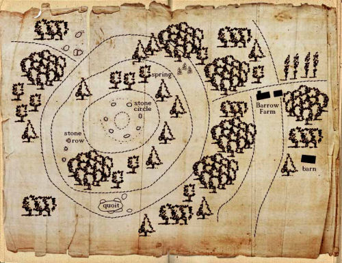 Bij de middelste boekenlegger gaat het over de wensstenen, stapelingen van leisteen die in Cornwall 'cairns' worden genoemd. Bij Barrow Hill staan er drie bij elkaar. Ze werden gebruikt om een wens te doen. Alleen ging elke wens die voor iemand uitkwam gepaard met ongeluk voor een ander. Daarom kon een wens ook ongedaan worden gemaakt. De Wensstenen De feeën schiepen er slechts drie, die er staan, om wensen voor jou in vervullen te laten gaan. Bij Barrow Wood staan cairns in een ring, het geschenk van een wens is wat zij brengen. Want zij kunnen je bede horen, of het nu een gril, een gebed of een onrustige geest betreft. Plaats je boodschap, aan het einde van de zomer, als dag en nacht even lang duren. Keer niet terug, doe dat nooit, want je wens behoort toe aan Barrow Wood. Er is een kans dat je ontdekt dat je wens niet is wat je in gedachten had. Misschien heb je spijt van wat je schreef? De rest van de tekst is afgescheurd (door Mia?) zodat je niet weet hoe je de wens ongedaan kunt maken. Bij de rechter boekenlegger kom je meer te weten over de effigies (beeltenissen). Dit zijn persoonlijke symbolen die van takjes worden gemaakt en een karaktereigenschap verbeelden. Je herkent de symbolen van Mia: Powerful (krachtig) en Gus: Brave (dapper). Bij de bang uitgevallen Olly zal wel Cowardly (laf) horen. Er is ook een beeltenis voor Orator (redenaar), Angry (kwaad) en Sly (sluw). Neem de zaklamp mee want die zal goed van pas komen. Klik achterin de Quoit waar een opening is. De telefoon gaat. Het is een snotterende Olly met een verward verhaal. Mia heeft zich overgegeven aan magie. Ze hebben stomme wensen gedaan. Olly is ook nog zijn bril kwijtgeraakt bij de picknickplaats en ziet niet veel. Hij zit opgesloten in een van de motelkamers. Hij vraagt je hulp om hem hier uit te halen met behulp van de CCTV-camera's (gesloten TV-circuit). Er hangt zelfs een camera in de motelkamer! Die Barry van Goshawk Security (beveiligingsbedrijf) let niet op, had hen moeten tegenhouden! En hoe kan een meisje nou zo mooi zijn en toch zo verschrikkelijk? (Hij bedoelt Mia). Bij de opening achterin ligt een plaat van Goshawk met de waarschuwing dat deze plaats door hen wordt bewaakt. Je ziet inderdaad buiten een camera ronddraaien. Het bos in