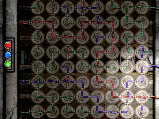 ElektrakastJe bent vlakbij het station. Loop er naartoe en dan links eromheen naar de elektrakast vlakbij de opening in de houten schutting. Gebruik de eerder gevonden sleutel om de kast te openen. Je stuit op een bedradingspuzzel. Je moet zorgen dat er een doorlopende verbinding is tussen de rode draad die van uiterst links komt naar de rode draad helemaal rechts. Hetzelfde geldt natuurlijk voor de blauwe en de groene draden. ![]() Als het gelukt is en aan de linkerkant drie gekleurde lampen branden heb je de stroomvoorziening van het station hersteld en springen overal lampen aan. Kantoor Klim opnieuw over de schutting achter het gebouw naar de binnenplaats toe. Onder het afdak brandt nu licht. Open de deur van het kantoor en ga naar binnen. Hier vond je eerder de sleutel van de elektrakast maar het was toen te donker om verder iets te onderscheiden. Nu verspreidt een beeldscherm van Goshawk Security enig licht en zie je meer. Zoom eerst in op de bureaulade en verplaats alle folders naar links totdat je bij een doosje potloden uitkomt. Klik daarna op het antwoordapparaat dat op het bureau ligt. Je hoort een oud bericht van tien jaar geleden van een snipverkouden Maggie aan Ben. Maggie had haar sleutels in het kantoor laten liggen in de buurt van de stoel. Als je nu de 'stoel van de baas' aanklikt dan vind je daar de garagesleutel. Zoom in op het beeldscherm dat vermeldt dat er geen videosignaal is. Onder het scherm ligt een lijst met foutcodes. 'Geen signaal (no signal / access)' heeft foutcode 475. Bovenaan de lijst is de code BH2673 geschreven. Klik op de hoorn van de telefoon en er wordt vanzelf een nummer getoetst. Een bewaker neemt op en vraagt om de locatiecode: twee letters, vier cijfers. Neem er de tijd voor, ik heb toch niets beters te doen. Toets de code in, de letter B staat onder toets 2 en de letter H onder toets 4, dus 242673. Als de bewaker vraagt om de foutcode tik je 475. Hij herstelt de verbinding met de camera's en je krijgt nu zeven deelschermen voorgeschoteld die je elk kunt aanklikken. NB: Sla je spel hier op! Kijk eerst naar Cam#1. Deze geeft zicht op de toiletten en de garage. Je ziet Baibin daar ronddolen (zie de plattegrond van het station). Cam#2 bevindt zich in de heren-WC. Cam#3 (linksonder op het scherm) staat achter de WC aan de bosrand en laat een gat in de muur zien. Cam#4 (twee beelden) bevindt zich links van het motel. Cam#07 laat het pompterrein zien vanaf de zijkant van het motel in de richting naar het restaurant en de straat. Boven in beeld verschijnt Baibin steeds. Klik als laatste op Cam#05. Deze geeft zicht op Motelkamer #3 waar een zenuwachtige Olly staat te raaskallen. Leid hem via de verschillende camera's naar buiten (steeds pijl linksonder indrukken), achter het motel om langs de rand van het bos naar de achterkant van de toiletten. Bij Cam#3 pijl omhoog indrukken om Ollie de WC binnen te loodsen via het gat in de muur. Bij Cam#2 in de WC op pijl naar rechts klikken. Bij Cam#1 wacht je even als je Baibin ziet verschijnen of ga je verder als zij met de rug naar Olly staat. Je weet hem 'veilig' de garage in te krijgen, maar hij was in zijn zenuwen zo dom om de naam van Baibin uit te spreken, dus of dat goed afloopt? Als je uitzoomt hoor je de stem van Olly van achter een deur. Hij denkt het gehaald te hebben, maar dan klinkt de stem van Baibin: Ik heb je gevonden. Olly denkt dat hij Mia voor zich ziet, die door Baibin is bezeten. Hij denkt Mia nog tot rede te kunnen brengen met een cadeautje, maar zijn laatste woorden klinken als een noodkreet. Klik op de deur. Is dat bloed? ![]() Verlaat het kantoor. In de hoek bij de schuttingdeuren zit Olly volledig in trance met flikkerende ogen en omgeven door oplichtende paddenstoelen. Let op het symbool op zijn voorhoofd. Pak de ID-kaart van Olly. Gus kijkt naar hem door een kier in de schutting en besluit naar de politie te gaan. Garage Open de garagedeur met de sleutel die je in de stoel vond en ga naar binnen. Er staat een radio aan en Emma heeft een beller. Het is mevrouw Tregowen die naast Barrow Hill woont. Zij vertelt er nooit te komen omdat het Baibin's wereld is en dat Baibin er als laatste is begraven op een mooie plek. Haar hond Bernard gaat er intussen blaffend vandoor. Had mevrouw Tregowen de naam van Baibin niet mogen uitspreken? Emma doet dat tot driemaal toe ook om Baibin uit te dagen. Was dat verstandig van haar? (Je kunt de radio uitzetten als je wilt). Voor je staat een oude auto weg te roesten, opgehangen aan kabels. Je kunt de kofferbak nog niet open krijgen (actiepunt). Klik op het kastje aan de muur rechts van het bord POWER. Geen van de knopjes doet iets. Er staat kennelijk geen spanning op. ![]() Klik op de werkbank en neem één schroevendraaier mee. Als je op het klosje aan de rechterkant klikt heb je een stuk metaaldraad gevormd. Leg het boveneinde van de draad tegen de knop van de ingeklemde antenne. Dan vormen ze één geheel. Pak nu een van de magneten op en hang die onder aan de draad in de lus. Je hebt dan een magnetische hengel gemaakt! Door op de antenne te klikken verdwijnt de hengel in je inventaris. Ga naar de voorkant van de garage en zoom in op het groen verlichte kastje boven aan de wand. Rechts daarvan kun je de klimop verwijderen om daarna het voorpaneel van een tweede kastje af te schroeven met de zojuist gevonden schroevendraaier. Op een schermpje staat 710, terwijl een kaartje 240W aangeeft. Je moet het vermogen (Watt) dus kennelijk naar beneden brengen met behulp van de witte schuifknoppen. In het schema staan de beginstanden van de knoppen zoals je die aantrof en het effect op het vermogen: