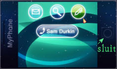 In de GSM kun je eventueel de emailberichten lezen (envelopje), het web doorzoeken(vergrootglas) en Rosangela's aantekeningen bekijken (balpen), door op het bijpassende icoon te klikken.