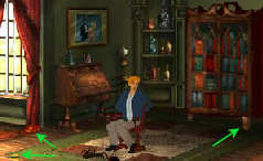 Als de ober weer verschijnt, spreek je hem nogmaals aan. Ditmaal is hij bereid George een kop koffie te brengen. Praat met hem over professor Oubier. Hij vertelt dat er geruchten zijn, dat de prof. zijn vrouw vermoord heeft. Hij was getrouwd met de beroemde actrice Carol.