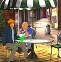 Praat dan met de man aan het andere tafeltje. Het blijkt de gendarme te zijn uit Broken Sword deel 1. Hij is inmiddels met een gouden handdruk ontslagen.