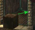 Loop naar links, tot bij het vuurtje. Rechts zie je een dressoir (cabinet) staan. Op de hoek van het dressoir staat een syphon. Jammer genoeg zit er geen drukcilinders meer in.