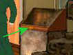 Naast de kachel zie je een emmer met kolen staan. Neem er een stukje steenkool uit.