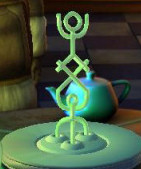 Gebruik nog een keer de scepter en ditmaal krijg je een bolle groene lampenkap (green lampshade). Neem hem mee en verlaat de grot.