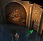Loop naar de deur, tegenover de deur waar je binnenkwam. Rechts hiervan vind je een bewerkte sleutel (decorated key). Neem hem mee.