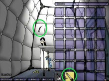Klik op 'pakken (take)' en aansluitend op de stoelpoot en Edna schroeft hem eraf.