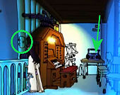 Harvey neemt nu het initiatief. Je bestuurt nu Harvey. Als je op voorwerpen klikt en ze naar Edna sleept, kan hij iets daarover vertellen.