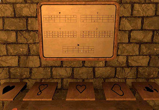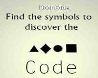 Kijk naar de symbolen op de muur en geef de bijbehorende getallen in op het scherm, dus 13 11 16 14 (klik met de linkermuisknop op het toetsenblok).