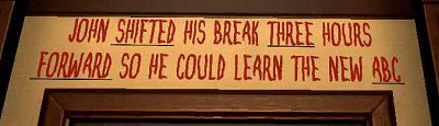 Kijk wat de zesde letter aan de wand is. Dat is de L van het woord Worthless.