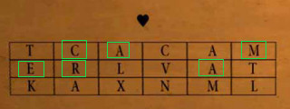 Als je deze in het afspeelapparaat stopt dan verschijnt er een raadsel dat (ten overvloede) door twee personen wordt voorgelezen. Het luidt:
