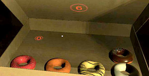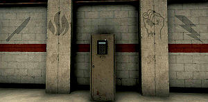 Kijk als je de hal binnengaat meteen om. Naast de deur hangt een beeldscherm waarop je vaag de wand in de opslagruimte kunt herkennen waar de speelautomaat staat.