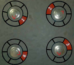 Bij de knoppen 3 en 4 moet je vier posities linksom gaan.
