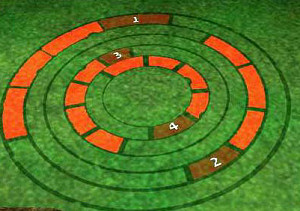 Bekijk de speeltafel in de opslagruimte nauwkeurig. Er staan ringen op met cijfers in bruine vakjes.