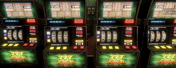 De rechter vier hebben een groen verlichte glasplaat waar 777 Jungle op staat.
