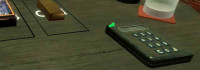 Laat daarna de afstandsbediening op de tafel vallen. (Valt deze per ongeluk op de grond en wil je haar een volgende keer oppakken, hurk dan eerst, door op de C-toets te drukken).