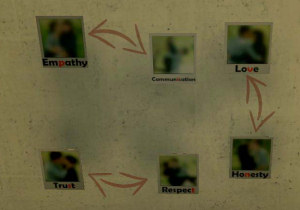Er liggen door het hele appartement verspreid kaartjes met letters erop.
