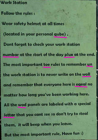 Draai rechts om het toegangshek heen en lees de tekst op het papier aan de kolom. Er staat: