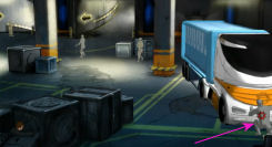 Jake heeft wel een nieuw probleem. Bij de vingerchip zullen ze hem herkennen als een politieman. Hij kan dus de laserbarričre voor de trap niet uitschakelen.