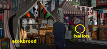 Start een nieuw spel en je ziet in de intro Manuel Calavero in het stadje El Marrow.Hij werkt voor het Departement van de Dood. Hij is een soort reisagent die zijn dode cliënten naar het dodenrijk brengt, door ze tickets voor de 'reis van de zielen' te verkopen naar de 9e onderwereld. Doden die goed hebben geleefd krijgen een kaartje voor een trein, zodat ze daar in 4 minuten zijn. De anderen krijgen bijvoorbeeld wandelstokken met een kompas erop en zullen er 4 jaar over doen. De cliënt in Manny's werkkamer, Celso Floris krijgt een wandelstok. Er komt post aan met de buizenpost. Pak de post met het handje waarin een radertje zit. Manny's baas Don Copal schrijft dat er veel vergiftigingen zijn geweest en dat alle medewerkers hard moeten werken om die op te halen en op weg te helpen. Bekijk de inventaris. Manny heeft een zeis bij zich. Bekijk de archiefkast. Tegenover die kast zie je een tafel, als je even doorloopt en op de pijl naar links drukt. Pak het kaartspel ervan af. Ga terug en ga onderin het scherm het kantoortje uit. Je krijgt de melding dat er geen autosave is en je in het menu moet opslaan om geen gegevens verloren te laten gaan. De autosave is er echter wél in de 2015 versie. De blauwe deur is de deur van het kantoortje van concurrent Domino Hurley. Die is op slot. Loop naar achteren toe. Praat met secretaresse Eva. Ze vraagt waarom hij niet bij zijn collega's bij de vergiftiging aanwezig is. Er zijn wat doden door soepvergiftiging gevallen en daar moet hij zijn cliënten ophalen. Zijn chauffeur weet de weg wel. Praat verder met haar en gebruik alle opties. Het is de dag van de doden, dus is iedereen in het land van de levenden om familie te bezoeken. Alleen zijn concurrent Domino is ook aan het werk om commissie te krijgen. Eva zegt dat Domino opslag heeft gekregen. Achter de gouden deur is het kantoor van baas Don Copal. Draai je om naar links en je ziet een perforator op Eva's bureau. Pak de kaarten uit de inventaris (select) en druk er gaatjes in met de perforator (gebruik het handje). Doe de kaarten in de inventaris. Links achter Manny is een lift naar de parkeergarage en achteraan is een lift naar de benedenverdieping. Neem de lift naar de garage. Loop naar rechts en bekijk de paal bij de doorgang. Achter de flappen ligt een snelweg en daarachter het land van de levenden. Je kunt er te voet niet door. Rechts is een afgesloten rolluik. Loop naar links en je ziet er auto's hangen. Loop verder in de richting van het schuurtje. Als je het gereedschappenkastje probeert te openen, komt Glottis uit het schuurtje. Hij is automonteur. Praat met hem. Hij zegt dat Domino Manny's chauffeur een vrije dag heeft gegeven. Glottis wil Manny's chauffeur niet vervangen. Hij is te dik en het is tegen de regels. Hij wil de auto wel groter maken. Daar heeft hij een werkbriefje voor nodig ondertekend door de baas. Manny krijgt een werkbriefje voor zijn inventaris. Ga naar rechts, naar boven en naar onder tot je bij de lift bent. Neem de lift en ga naar links, zodat je met Eva kunt praten. Ze legt contact met de baas, maar die wil niemand zien. Ga naar links en neem de andere lift. Loop naar onder en je ziet een zithoek. Probeer de deur links. Die is op slot. Nu kun je het bord bekijken en het beeld. Links van het bord zie je een foto van trein nummer 9 aan de muur. Ga naar rechts en je komt weer uit in de gang bij de bank. Ga links van de deur de doorgang door. Bekijk het beeld en het schilderij. Ook daar zit de deur op slot. Ga naar links en open de grote deur. Die komt uit op straat. Ga links de straat op en je bent bij een snelweg. Manny kan daar niet lopen. Ga terug naar het gebouw en loop naar rechts. De pijl daarvoor staat iets hoger op het scherm. Kantoor Don Copal, ballonnenkraampje clown Ga de steeg links in en loop door tot je een touw van stropdassen ziet. Klim omhoog. Ga het open raam door. Het is de kamer van baas Don Copal. Bekijk de papieren op het bureau. Er liggen onder meer werkbriefjes, die je niet kunt pakken. Bekijk de machine. Die beantwoordt de intercom. Gebruik het rechtericoon en je ziet welke antwoorden de intercom kan geven. ![]() Klik op het pijltje naar beneden en druk op het antwoord 'Ah, cripes.....I'm busy'. Eva zal dan zelf werkbriefjes ondertekenen. Ga door het raam, klim naar beneden en loop de steeg uit. Ga de kraampjes bekijken. ![]() Je ziet bij de clown stokbroden in een mandje. Pak een stokbrood en praat met de clown. Kies een kattenballon en vraag daarna om een dode wormballon. Vraag weer om een dode wormballon. In plaats van een kattenballon kun je ook vragen om bijvoorbeeld een dingo. Je hebt maar één opgeblazen ballon nodig. Manny mag niet door de tent heen lopen om de parade te zien. Ga terug het gebouw in. Neem de lift. Ga links van het bureau staan en praat met Eva (Eva, I really...work order). Eva tekent en even later zie je Glottis in een auto rijden met Manny als passagier. Manny komt aan in een cafetaria in het land van de levenden. Er ligt een ingebakerde ziel op de vloer te kronkelen. Gebruik de zeis en Manny haalt het skelet uit zijn omhulsel. Baas Don is niet tevreden over deze cliënt, hij zou een betere willen hebben, zoals Manny's concurrent altijd meeneemt. De cliënt wordt in een soort twee componentenschuim gegoten. Hij verdient geen beter vervoer, maar krijgt wel een mok mee. Ga langs het bureau van Eva naar onder en zie dat de deur van Domino open is. Domino is aan het boksen. Praat met hem. Hij heeft een non een kaartje voor de trein kunnen verkopen. Vraag waarom hij altijd de betere cliënten krijgt. Je schiet niets op met het gesprek. Ga terug naar Eva en neem de lift aan het eind naar de lobby. Buizenpost, cliënt Meche Ga naar links en je ziet een mopperend wezen. De machine voor de buizenpost is kapot. Ga, als de technicus weg is, naar links en je ziet dat de deur open is. Als je bij de buitendeur staat en dan naar rechts gaat is daar ook de deur open. Ga naar links en ga de deur door. Bekijk de werktafel. Er hangen twe