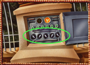 Pak het houten blokje (wooden block) op dat op de linker speaker ligt, open de inventaris en klik met het blokje op het raam (secure the window).