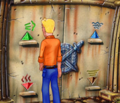 Kijk naar de vlindercollectie op de rechter muur en Hayseed herinnert zich het wachtwoord. Klik op het toetsenbord van de computer en Hayseed typt automatisch het wachtwoord admiral in.