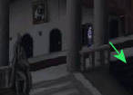 Loop terug naar rechts en kijk naar de muur. Rechts van het schilderij zie je een touw hangen. Wacht tot er geen soldaten patrouilleren en trek dan aan het touw.