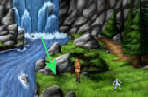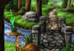 Huppel dan snel naar links en bij de wegwijzer weer naar links. Je bent dan bij het brede stuk in de rivier. Hier ligt ook een lelieblad in het water. Klik erop met je hand-cursor en Maeldun weet zichzelf uit de kaken van de vos te redden 1% wisdom.