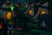 Ga vanaf de stadpoort omhoog, naar het veld met de vogelverschrikker. Hier zie je de vos. Draai meteen om en ga naar beneden en daarna nogmaals naar beneden.