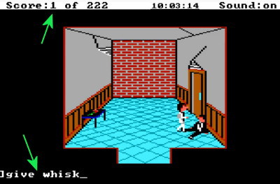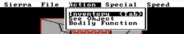 Met de TAB toets kun je in de inventaris bekijken wat Larry allemaal bij zich draagt. De voorwerpen worden in tekst weergegeven.