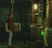 Loop de winkel van George in en vraag hem naar een uitrusting. Nadat Martin wat geslapen heeft, staat een tas (bag) met spullen op de toonbank gereed. Open de tas in je inventaris en je haalt er een touw (rope), een lamp, een aansteker (lighter) en een hamer (hammer) uit.