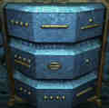 Probeer nu de lade (drawer)van het bureau te openen. Hij blijkt op slot. Zoom uit het bureau. Kijk naar de grote potplant op het tafeltje onder de kalender. Rechtsklik erop en Martin vindt een sleuteltje (key). Gebruik het sleuteltje om de bureaulade te openen. Haal de archiefstempel + stempelkussen (archive stamp) eruit.