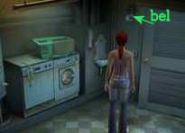 Helemaal onderaan gekomen zie je dat Shelton de deur gebarricadderd heeft. Nina zal nu via de schacht aan de rechterkant weer naar boven klimmen.