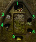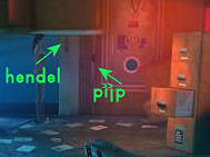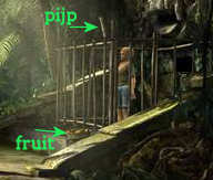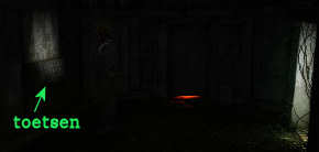 Aan de rechterkant van de kelderruimte zie je een papegaai in een kooi en een kolenkachel staan. Loop naar de rechterkant van de kelder en probeer iets te bekijken. Meteen begint de papegaai te krijsen.