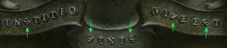 In de rest van de balk zie de voorwerpen die bisschop Parrey bij zich draagt.