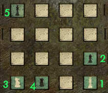 Zet het bordje van Patterson dus een vakje naar beneden en plaats het bordje van Lucie Forrester helemaal bovenaan. Dit zorgt ervoor dat William Patterson het boek kan halen terwijl Lucie bezig is met haar lezing.