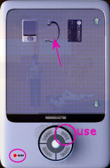 Rechtsboven in je scherm zie je een "i". Klik erop en je Ipod opent. Hierin worden de voorwerpen bewaard die je verzamelt. Je kunt ze bekijken (look) en gebruiken (use).