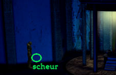 Loop dan verder naar links en je ziet een gebouw met neonverlichting boven de deur. Dit is de 'crossed sword', de lokale bar. Ga naar binnen.