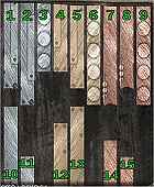 Nummer de gekleurde staafjes boven 1 tot en met 9. Nummer de gekleurde staafjes beneden 10 tot en met 15. Linksklik om ze te selecteren. Rechtsklik om van tangetje te wisselen.